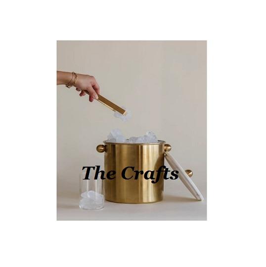 ถังน้ำแข็งที่มีด้ามจับทองเหลืองดีไซน์ไม่เหมือนใครถังใส่น้ำแข็งทุบทำจากสเตนเลสสตีลสำหรับใช้งานโรงแรมในบ้าน
