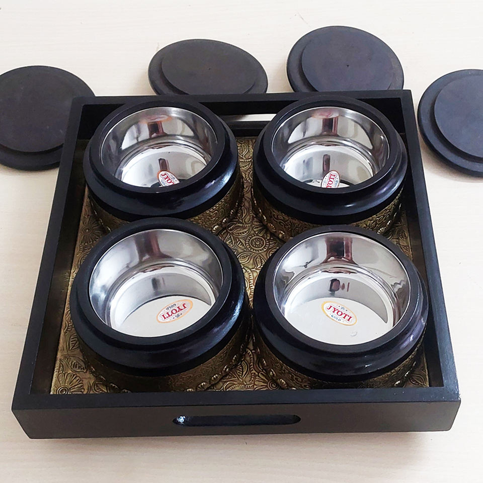 ชุดภาชนะเหล็กใส่ผลไม้และเครื่องดื่ม ดีไซน์โดดเด่น พร้อมถาดเสิร์ฟ กระปุกอเนกประสงค์ทันสมัยสำหรับจัดระเบียบครัวเรือน
