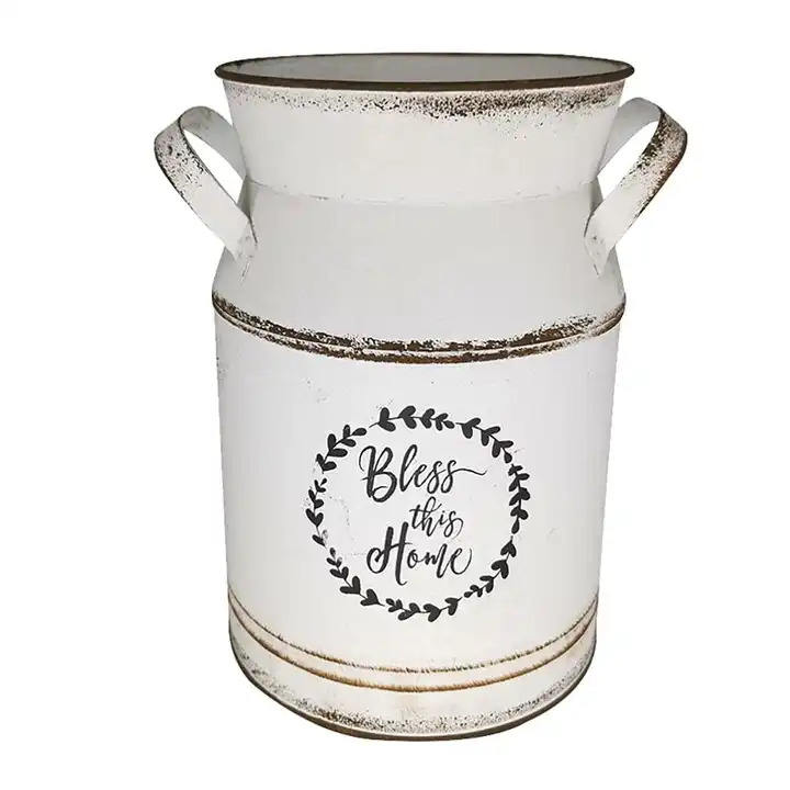 ที่ปลูกต้นไม้สีขาวแบบวินเทจสำหรับตกแต่งบ้านและสวนกระป๋องนมชุบสังกะสีดีไซน์ไม่เหมือนใคร