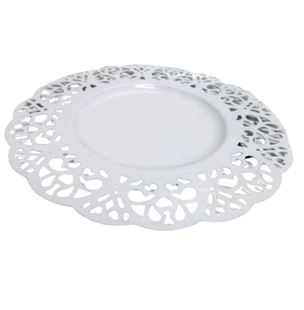 จานเหล็กทรงกลมแบบมีเอกลักษณ์สำหรับตกแต่งห้องครัวและบนโต๊ะสไตล์วินเทจสีขาว PC สีขาวดีไซน์ไม่เหมือนใคร