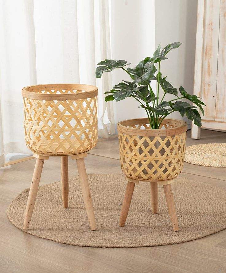 ตะกร้าสานด้วยมือเชือกปอกระเจาพร้อมขาตั้งสำหรับการตกแต่งในร่มและกลางแจ้ง