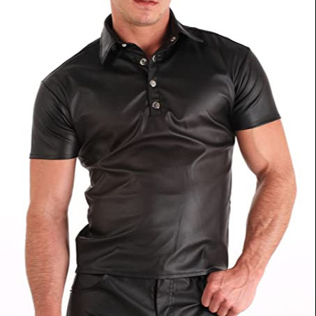เสื้อยืดแขนหนัง PU สำหรับผู้ชายเสื้อยืดหนังออกแบบได้ตามต้องการ