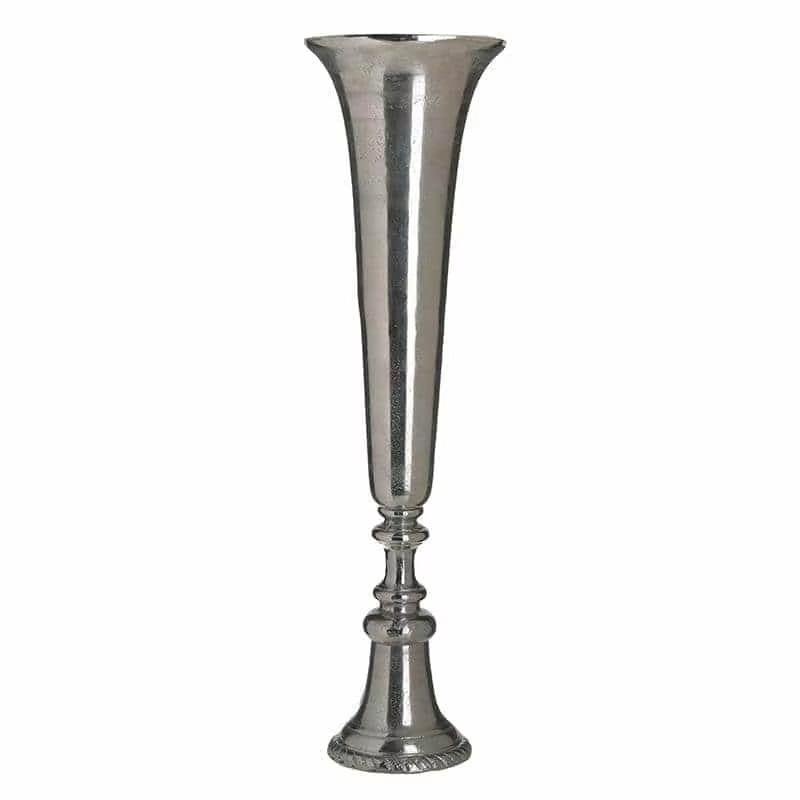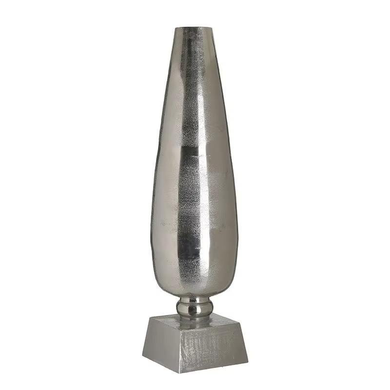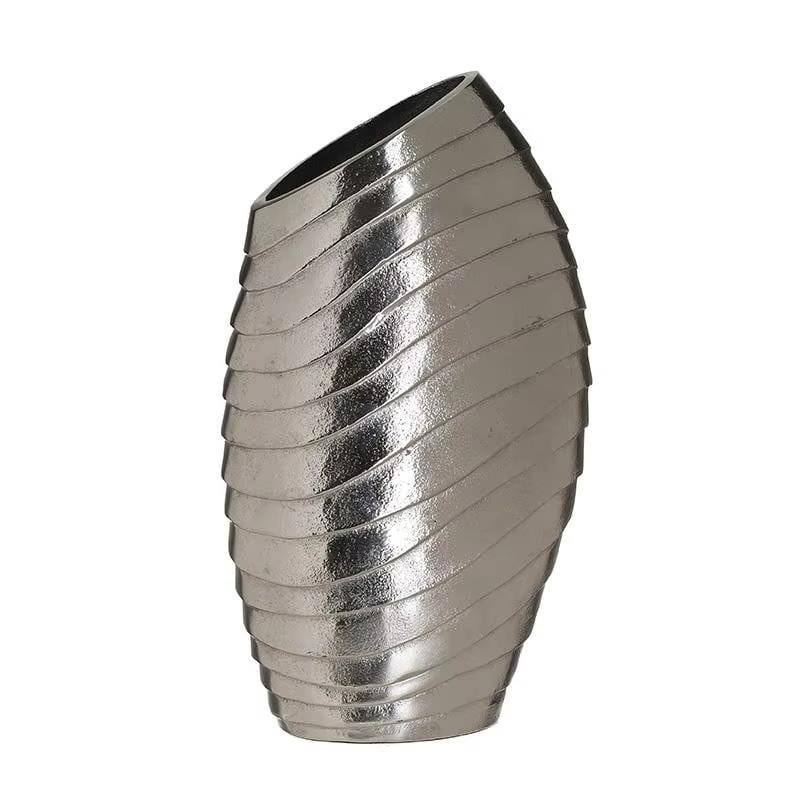 แจกันโลหะสีเงินที่ออกแบบอย่างมีเอกลักษณ์เหมาะสำหรับการตกแต่งบ้านและการแสดงบนโต๊ะทำด้วยมือจากอินเดีย