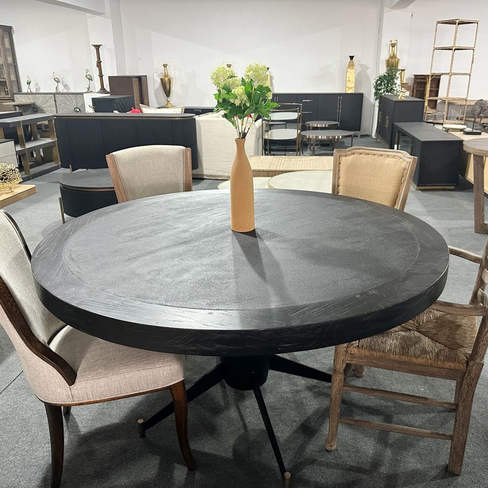 ชื่อสินค้า:โต๊ะอาหารทรงกลมไม้จริงรีเคลม สีขาวล้างสไตล์ลอฟท์ชนบท