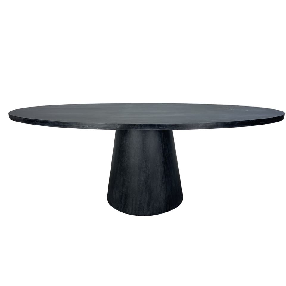 โต๊ะอาหารทรงกลมไม้จริงรีเคลม สีขาวล้างสไตล์ลอฟท์ชนบท