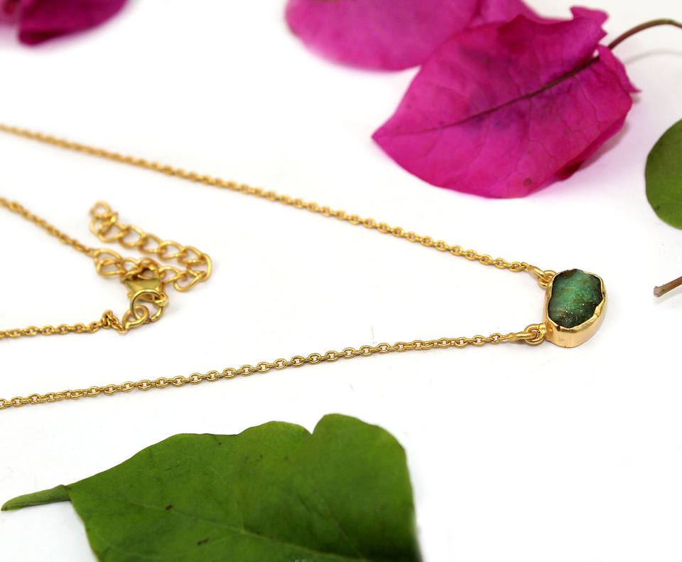 Unique Design Natural Emerald Green Pendant Necklace Dainty 22K Gold Chain Jewellery for Women Girls Wholesale Bulk Form India
