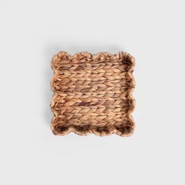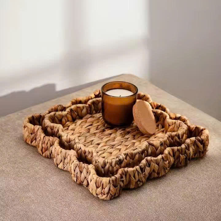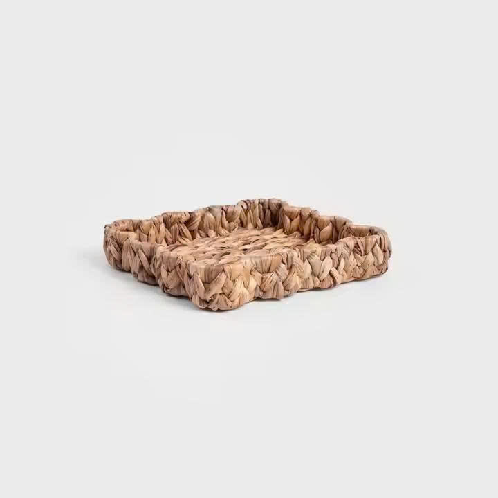 ถาดตกแต่งผักตบชวาทรงสี่เหลี่ยมผืนผ้าถาดสานด้วยมือจากเวียดนามถาดน้ำทรงเปลือกหอยธรรมชาติดีไซน์เป็นเอกลักษณ์