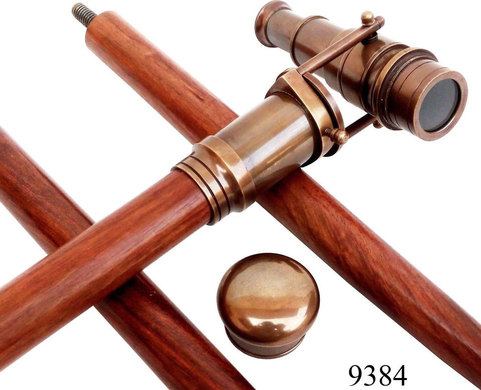 กล้องโทรทรรศน์ทองเหลืองสำหรับเดินทะเลไม้เท้าสำหรับผลิตจากงานหัตถกรรมของชาวอินเดีย