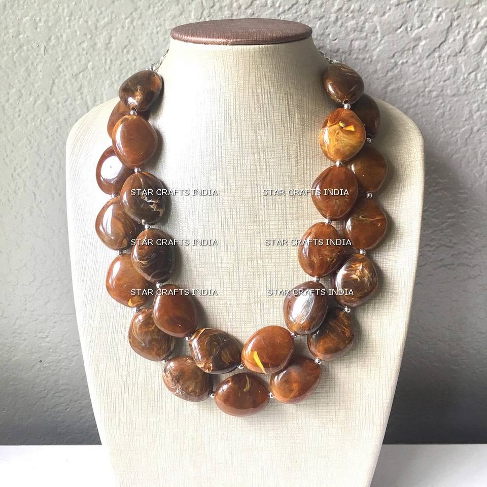 สร้อยคอลูกปัดไม้เรซินสำหรับผู้หญิงเครื่องประดับแฟชั่นดีไซน์ใหม่สำหรับวันหยุดฤดูร้อน
