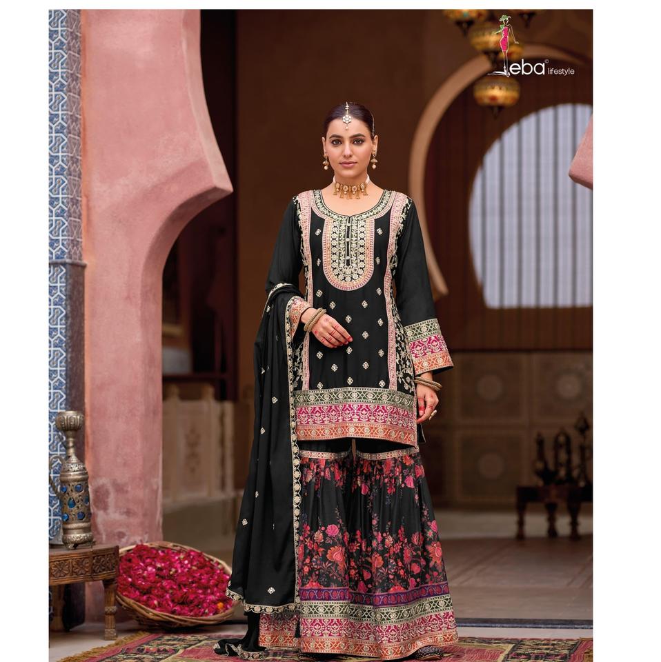 ชุดสูทปากีสถานที่มีเอกลักษณ์พร้อมลายปักและลวดลายที่มีสไตล์พร้อมด้วย Dupatta และ Palazzo ในราคาที่ดีที่สุด