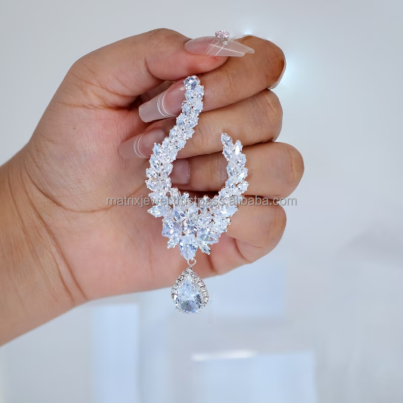 ตุ้มหูทรงลูกแพร์ประดับเพชรโมอิสสีเงิน925ชุบทองแบบ VVS ดีไซน์ไม่เหมือนใคร