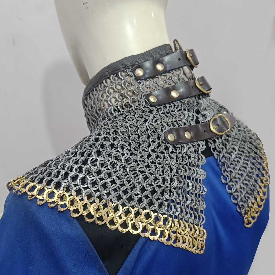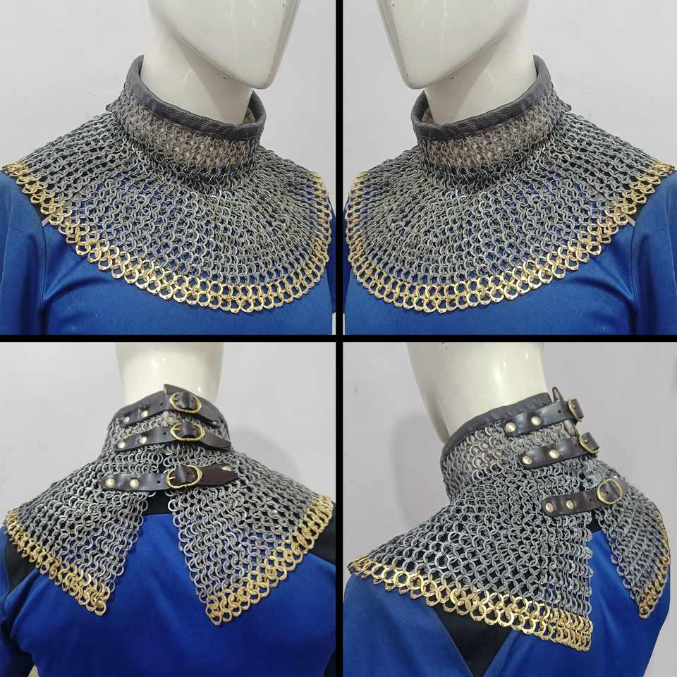 ชุดเกราะคอปกแบบย้อนยุคทำจากเหล็กอ่อนและทองเหลืองดีไซน์ไม่เหมือนใครคอปกแบบอัศวินยุคกลาง