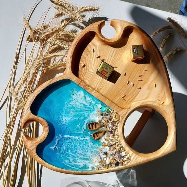 จานเสิร์ฟอาหารตกแต่งทนความร้อนสำหรับห้องครัวทันสมัยแผ่นไม้สักและเรซิ่นปลอดภัยดีไซน์เป็นเอกลักษณ์