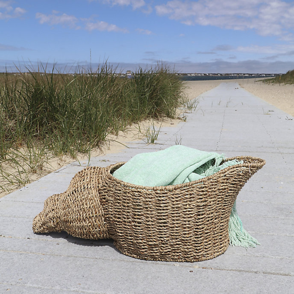 ตะกร้าสานจากหญ้าทะเลและเปลือกหอย