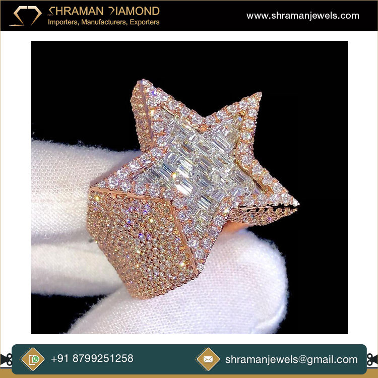 Unique Design Silver Plated VVS1 9.5 TCW and DEF Color 29 Grams Custom Star Baguette Moissanite Diamond Men's Ring