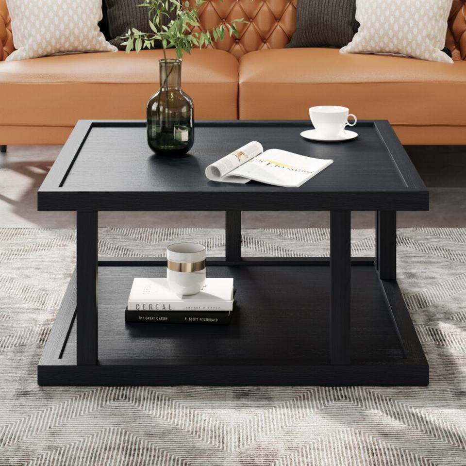 โต๊ะกาแฟไม้จริงสีดำ ดีไซน์ไม่ซ้ำใคร ทรงสี่เหลี่ยม