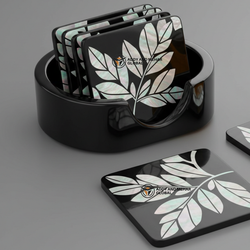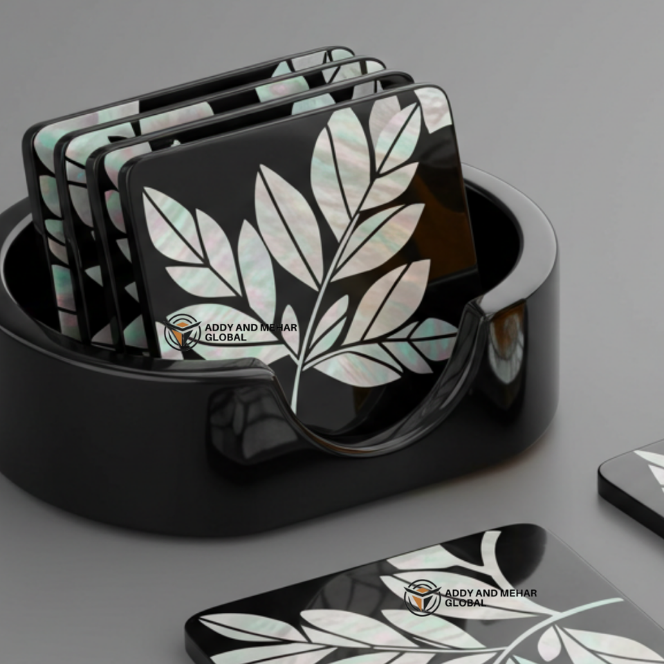 ชุดถาดรองแก้วมุกสีดำและสีขาวมีสไตล์สำหรับตกแต่งบ้านที่ทันสมัย