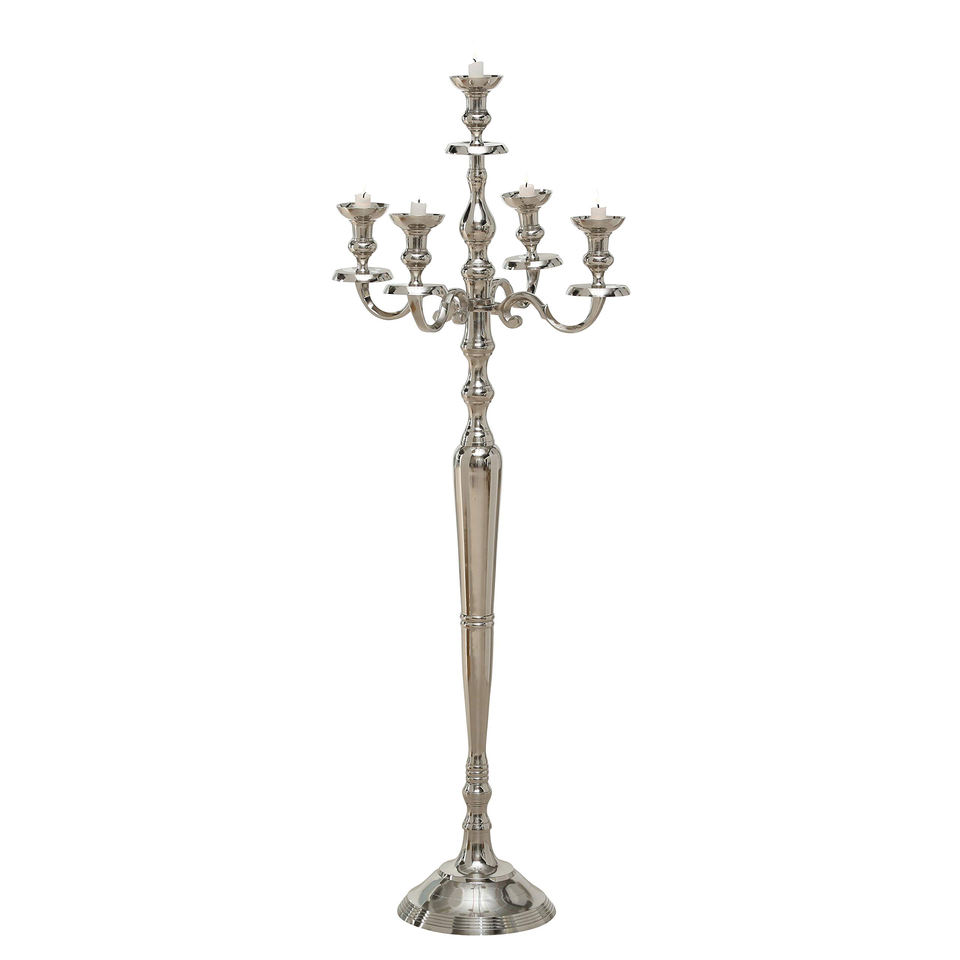 การออกแบบที่ไม่ซ้ํากันขนาดสูงโลหะอลูมิเนียมเชิงเทียนงานแต่งงานและตกแต่งบ้านเงินสําเร็จรูปกลางสําหรับตกแต่งโต๊ะ