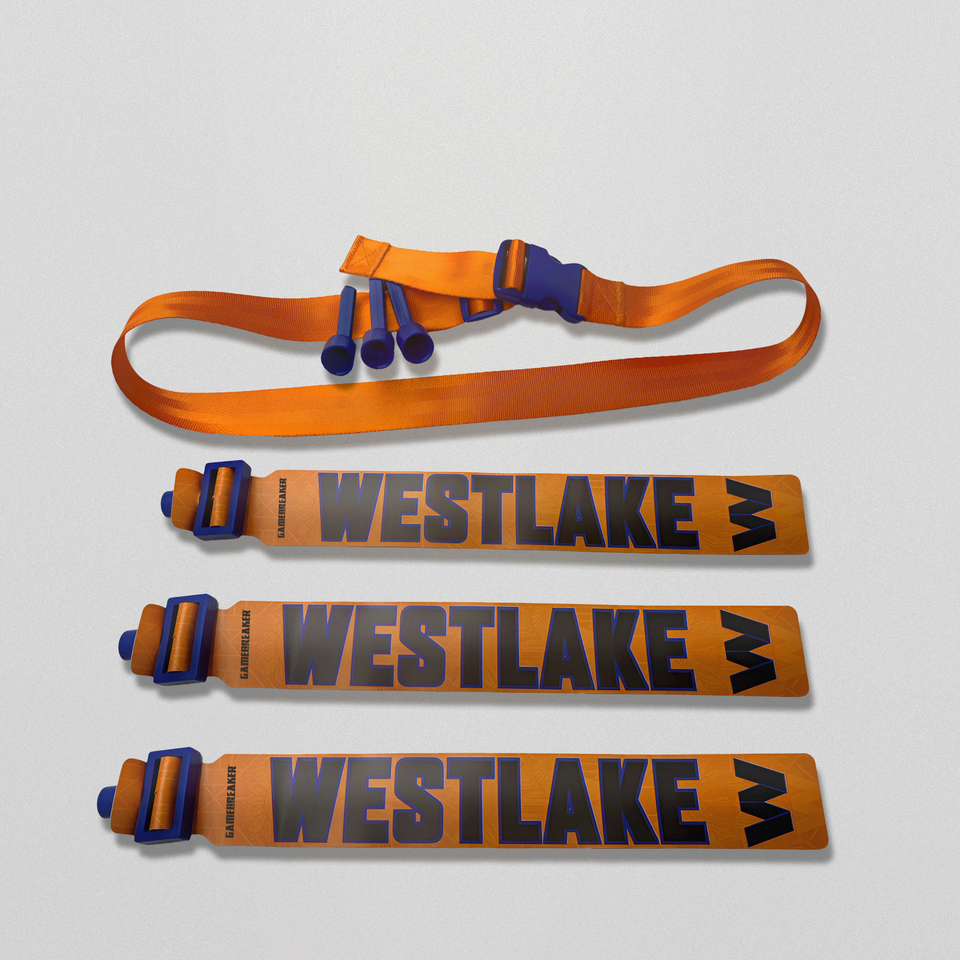 เข็มขัดฟุตบอลแบบพับได้สามชั้น ดีไซน์เฉพาะตัว อุปกรณ์กีฬากลางแจ้ง พิมพ์ลายดิจิทัล โลโก้ธงชาติ สำหรับฟุตบอลธง