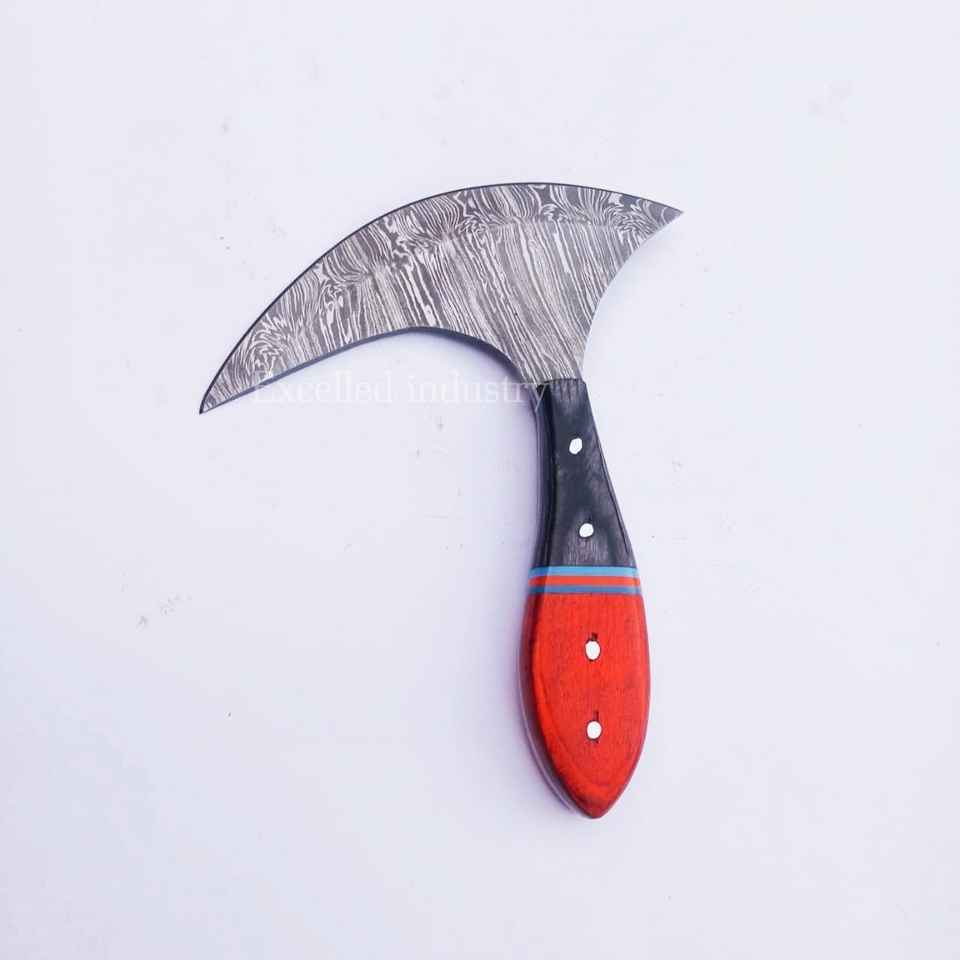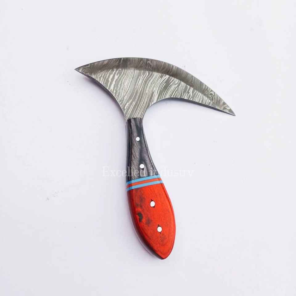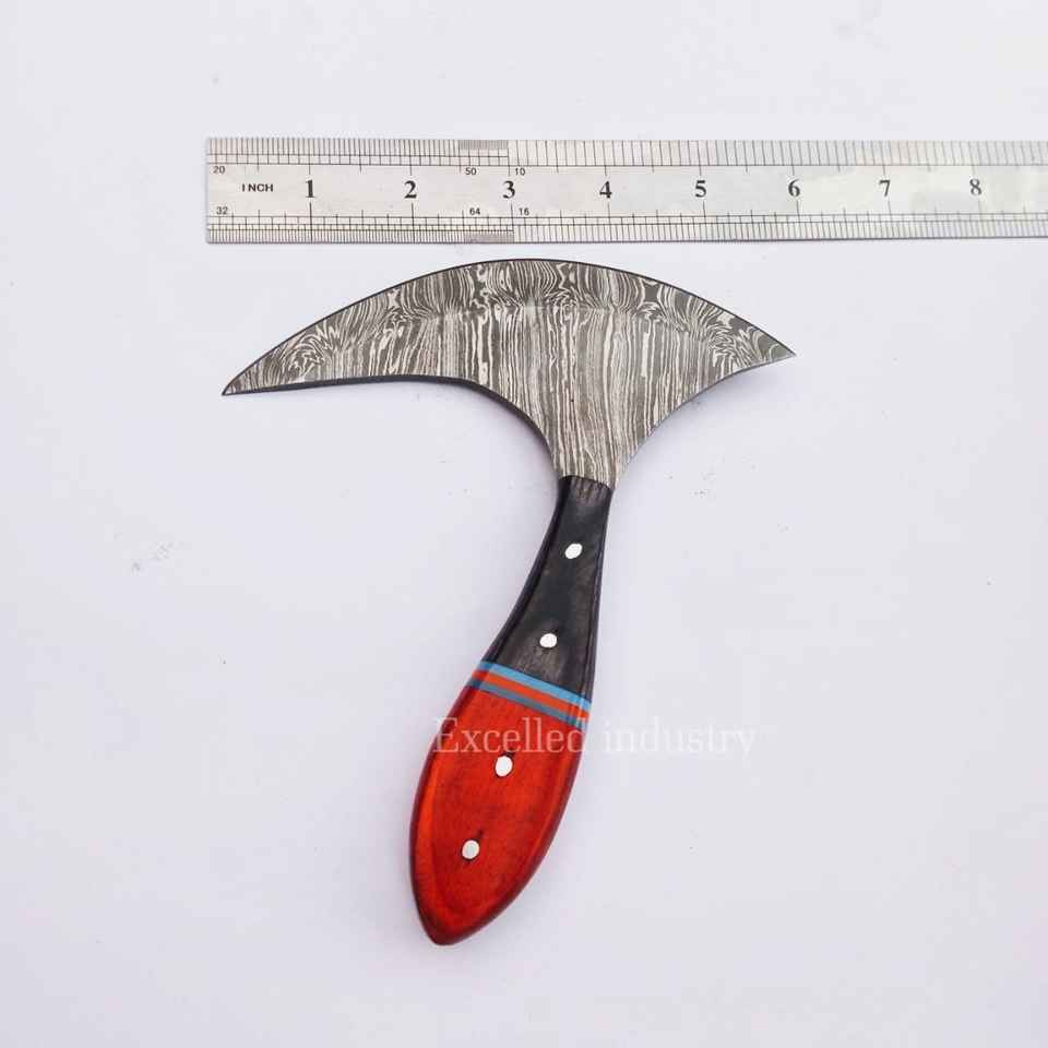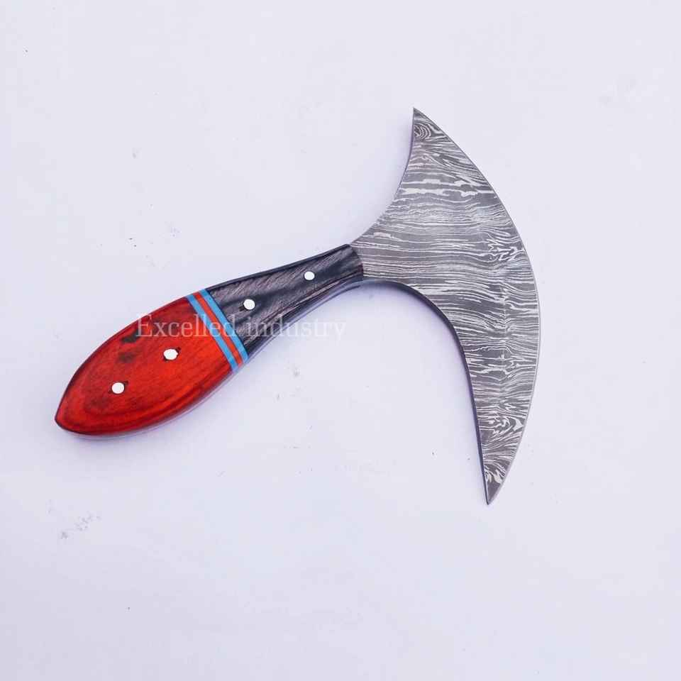มีด Ulu มีดเชฟดามัสกัสทำมือด้ามไม้พร้อมปลอกหนังดีไซน์ไม่เหมือนใคร