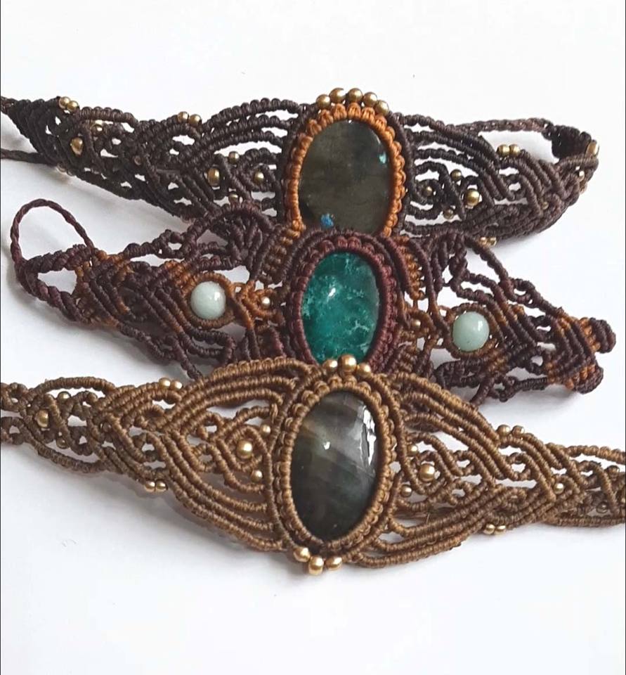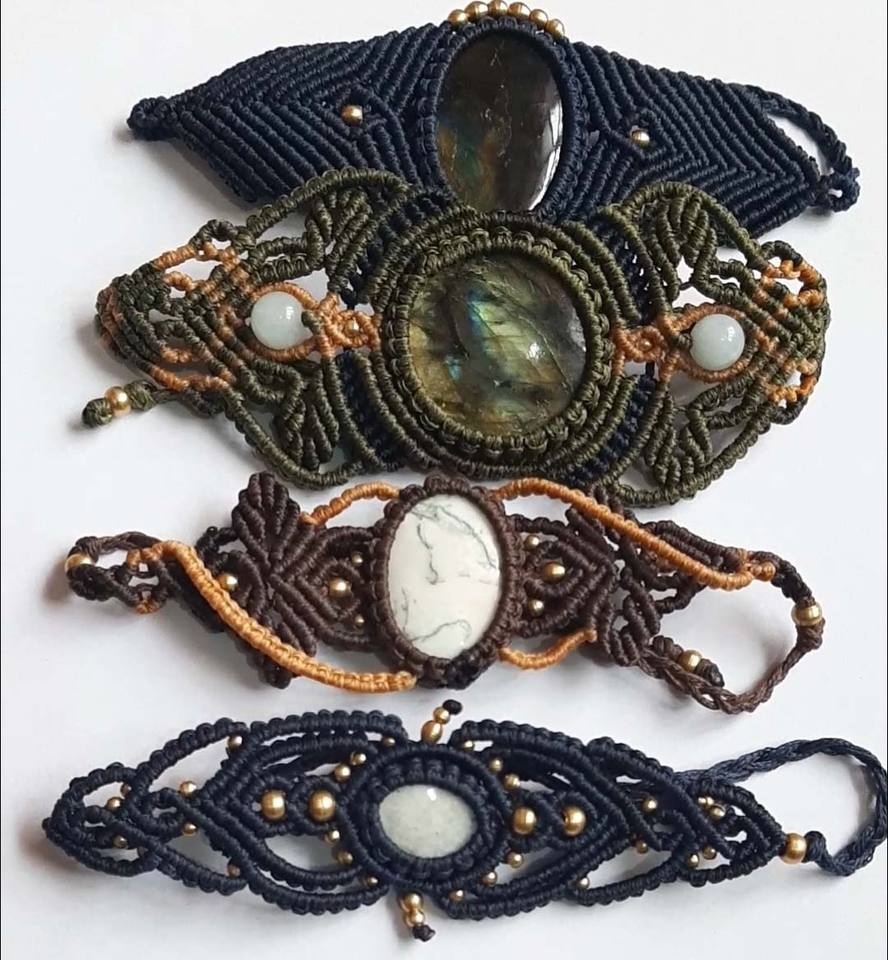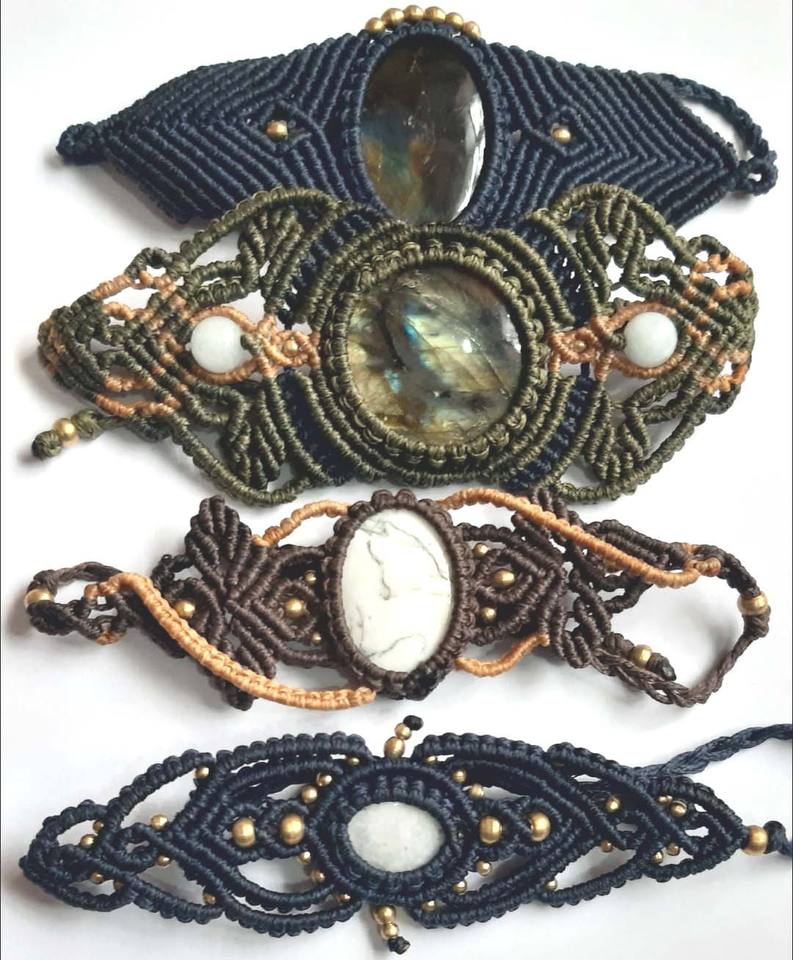 Unique Design White Agate Oval Shape Gemstone Cuff Macrame Bracelet With Small Blue Agate Beads Handmade Chord for Valentine