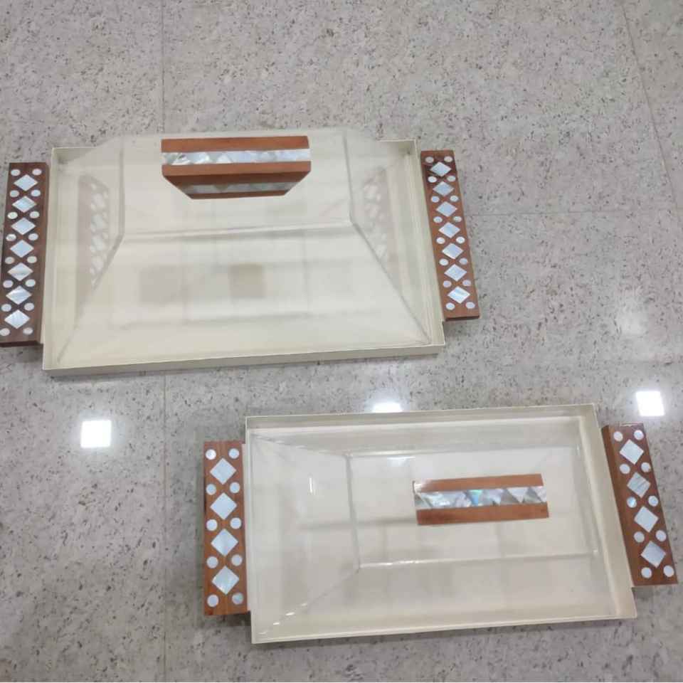 ถาดเสิร์ฟอะคริลิคฝังไม้และเปลือกหอยมุกดีไซน์พิเศษ สำหรับบ้าน งานเลี้ยง งานเทศกาล จานเสิร์ฟหรูหราสำหรับโต๊ะกาแฟ