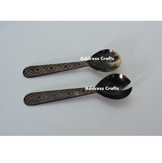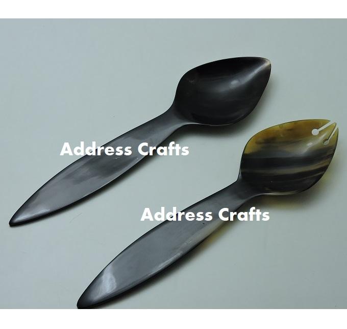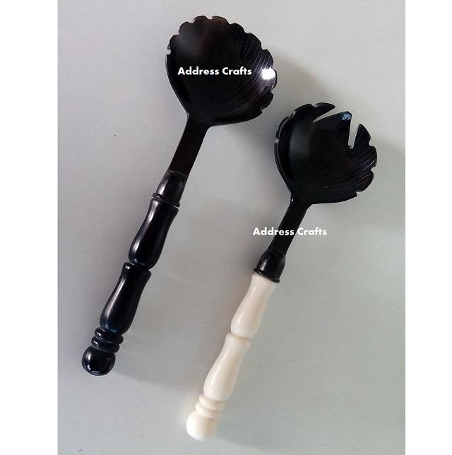 ช้อนและส้อมเสิร์ฟสลัดทำจากเขาสัตว์ธรรมชาติ ดีไซน์เฉพาะตัว เป็นมิตรกับสิ่งแวดล้อม ขนาด 11 นิ้ว สำหรับใช้ในครัวเรือน โรงแรม และเชิงพาณิชย์