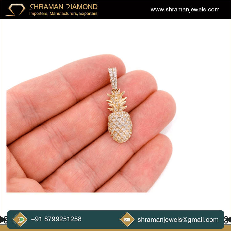 สร้อยคอรูปสับปะรดดีไซน์พิเศษ ทองคำแท้ 10K ประดับเพชรโมอิสซาไนต์ VVS จี้เล็กน่ารัก เครื่องประดับแฟชั่น ของขวัญสำหรับผู้หญิง จี้น่ารักมีเสน่ห์