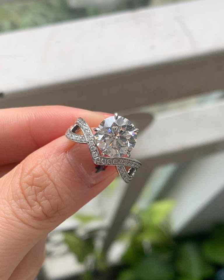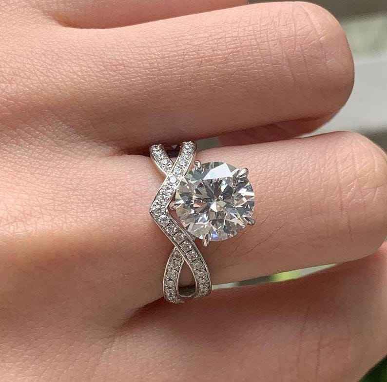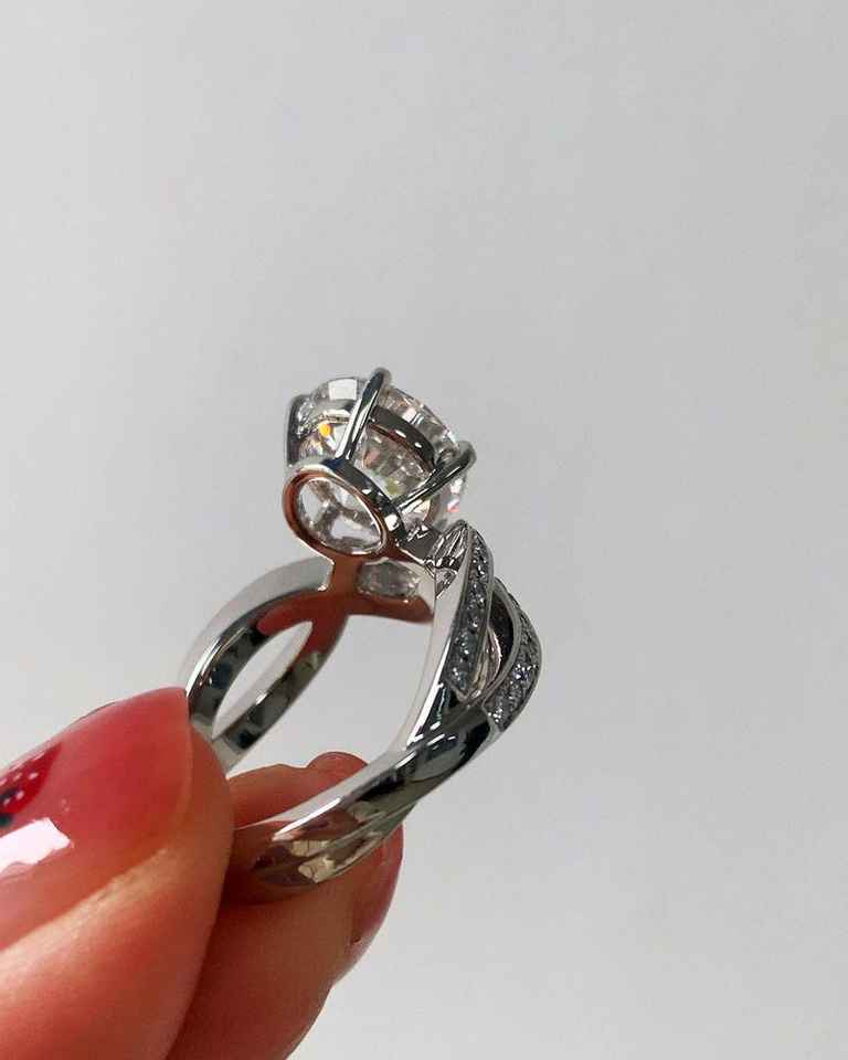 แหวนเพชรทรงกลมเจียระไนแบบบริลเลียนท์ ดีไซน์เฉพาะตัว เพชรเพาะเลี้ยงในห้องปฏิบัติการ ทองคำขาว สำหรับงานหมั้น งานแต่งงาน ของขวัญวันครบรอบสำหรับเธอ
