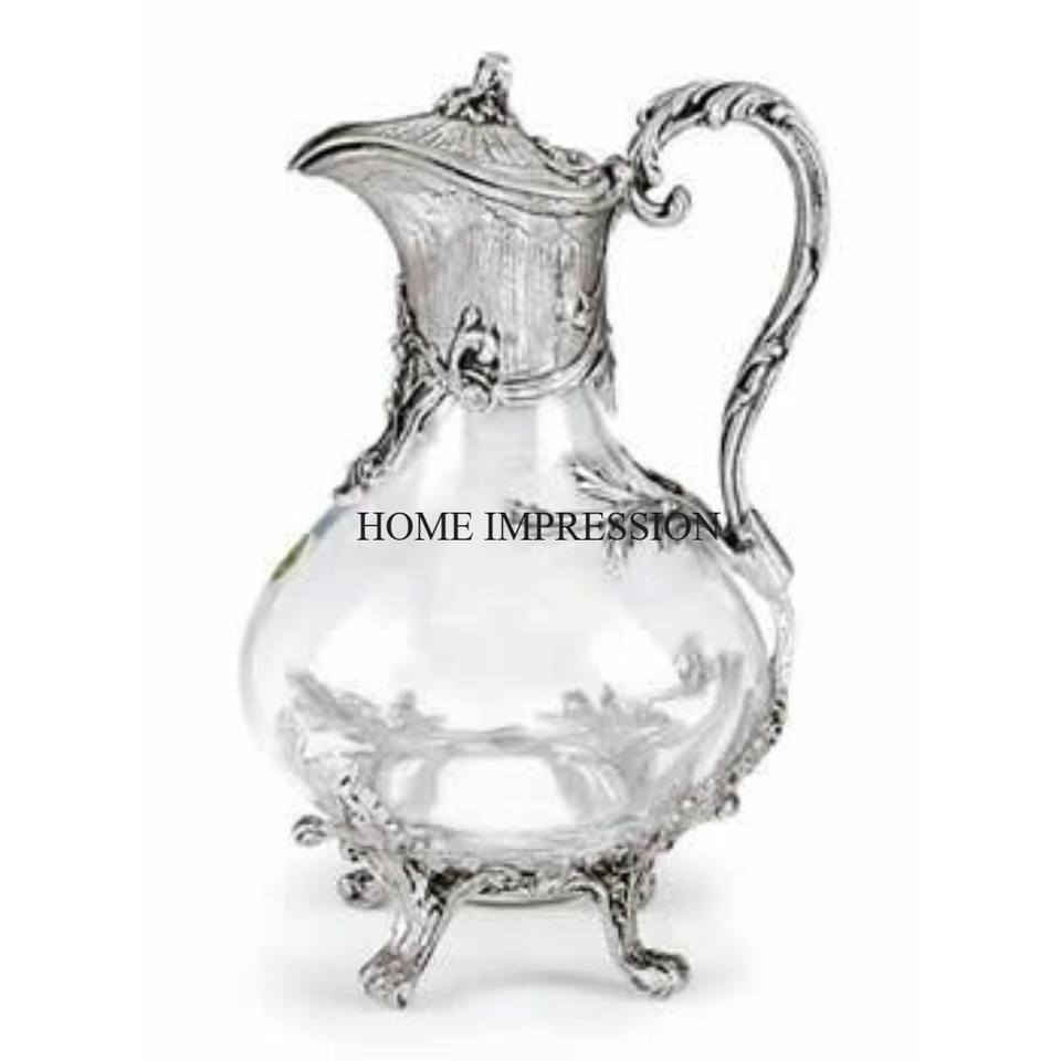 เหยือกโลหะใสดีไซน์เฉพาะตัว พร้อมหูจับและฐานสีเงิน สไตล์วินเทจ ความจุ 3 ลิตร สำหรับเสิร์ฟไวน์ น้ำผลไม้ และน้ำมะนาว