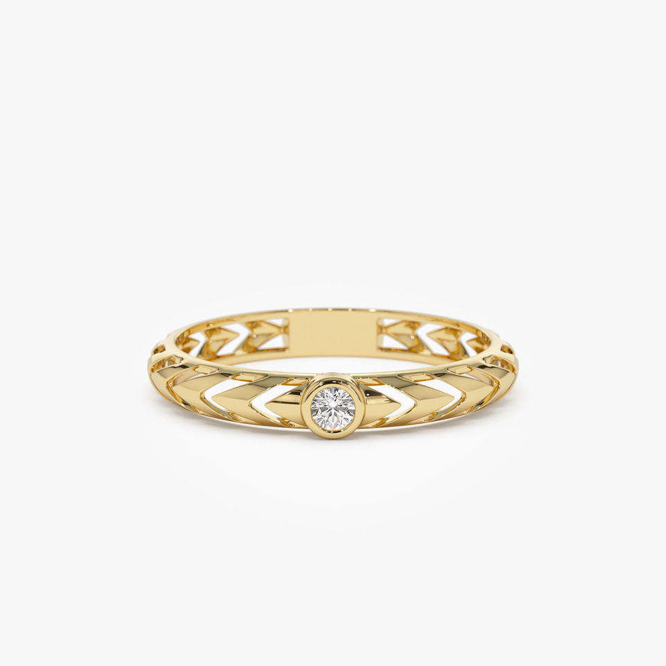 แหวนเพชรทรงโมเดิร์น ดีไซน์เฉพาะตัว ทองคำขาว 14k ชุบโรเดียม เพชรทรงบริลเลียนต์ VS 0.07 กะรัต เพชรธรรมชาติ รับรองคุณภาพ MOQ ต่ำ ผลิตตามแบบ ODM อย่างมีจริยธรรม