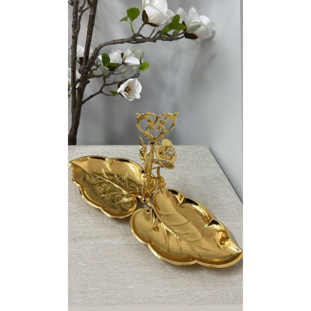 แผ่นโลหะกลวงลายนูนที่ไม่เหมือนใครทำจากโลหะทนทานสำหรับวางผลไม้โต๊ะกลางโต๊ะที่หรูหรา