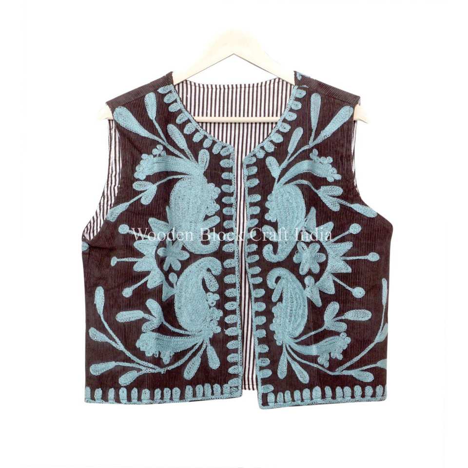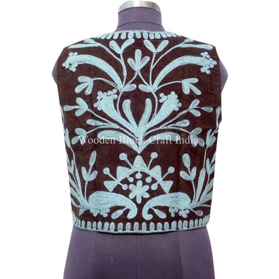 เสื้อกั๊กปักลายดอกไม้ฤดูหนาวแบบเป็นมิตรกับสิ่งแวดล้อม บุด้วยผ้าฝ้ายคอตตอนสไตล์วินเทจ ให้ความสบายเหมือนเสื้อโค้ท สำหรับผู้หญิง