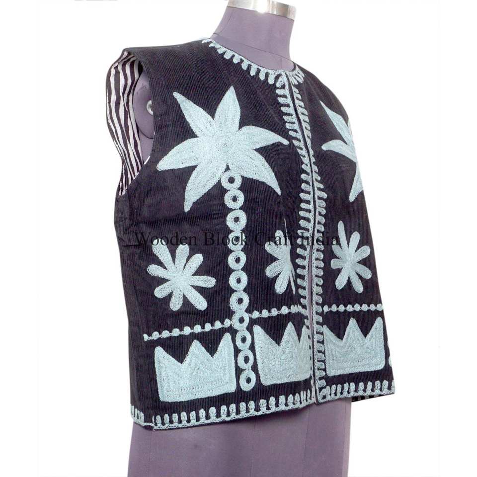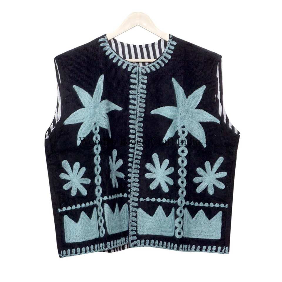 เสื้อกั๊กปักลายดอกไม้ฤดูหนาวแบบยั่งยืน บุด้วยผ้าฝ้ายซูซานีสไตล์วินเทจ ให้ความสบายเหมือนเสื้อโค้ท สำหรับผู้หญิง
