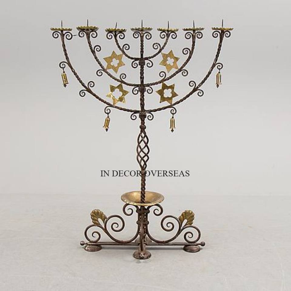 เชิงเทียน3ชิ้นกลางทำจากโลหะเคลือบทองหรูหราไม่เหมือนใครจากอินเดีย