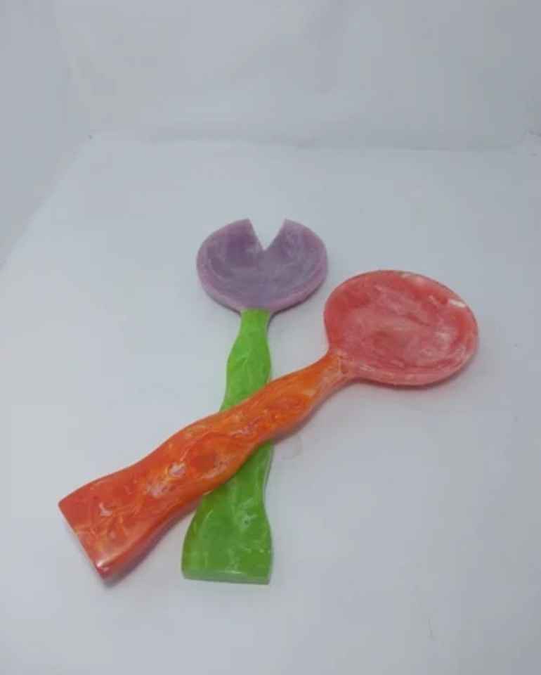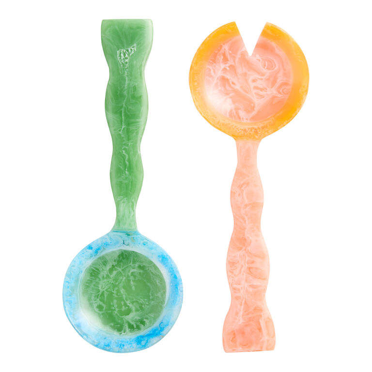 ชุดช้อนส้อมเสิร์ฟสลัดเรซิ่นลายวนสีดำเบจ สำหรับงานจัดเลี้ยง