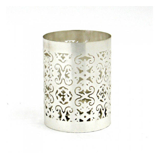 ที่วางแก้วชุบนิกเกิลสำหรับวางเทียนชาโลหะสำเร็จรูปดีไซน์แฮนด์เมดสำหรับน้ำหอมและคาเฟ่ในเทศกาลคริสต์มาส