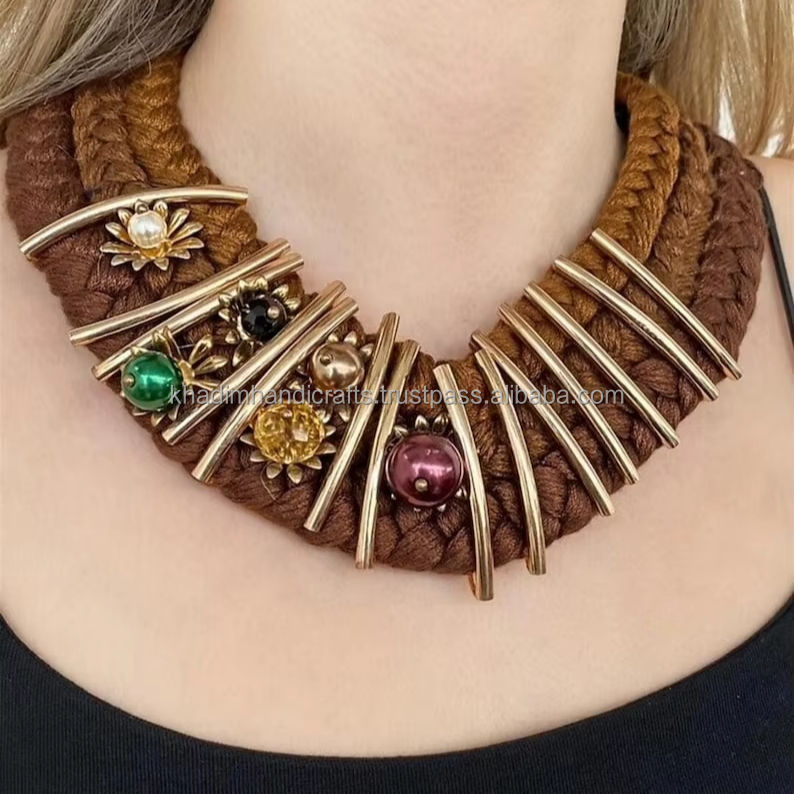 สร้อยคอปักลูกปัดแก้วที่เป็นเอกลักษณ์เครื่องประดับแฟชั่นทำด้วยมือสำหรับผู้หญิงที่ชื่นชอบงานฝีมือที่ประณีต
