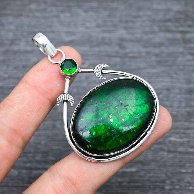 จี้พลอยลาบราดอไรต์สีเขียวประกายระยิบระยับไม่เหมือนใคร925เงินสเตอร์ลิงเครื่องประดับออกซิไดซ์ของขวัญคริสต์มาสที่สมบูรณ์แบบสำหรับคุณแม่
