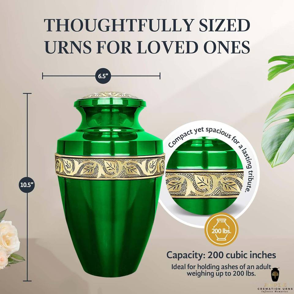 โกศบรรจุอัฐิสีเขียวทอง ดีไซน์เป็นมิตรกับสิ่งแวดล้อม ปรับแต่งได้ ทนทาน ความจุ 220 คิวบิกอินช์ สำหรับบรรจุอัฐิมนุษย์ สไตล์ยุโรปอเมริกัน