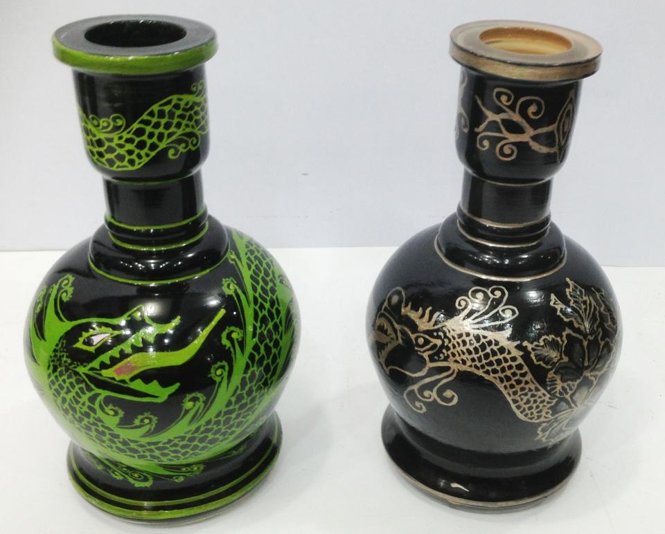 แจกันแก้วลายสลักมือสไตล์อียิปต์สุดหรูสำหรับฮาโลวีน ขนาด 30 ซม. ฐานชิชาขนาดใหญ่
