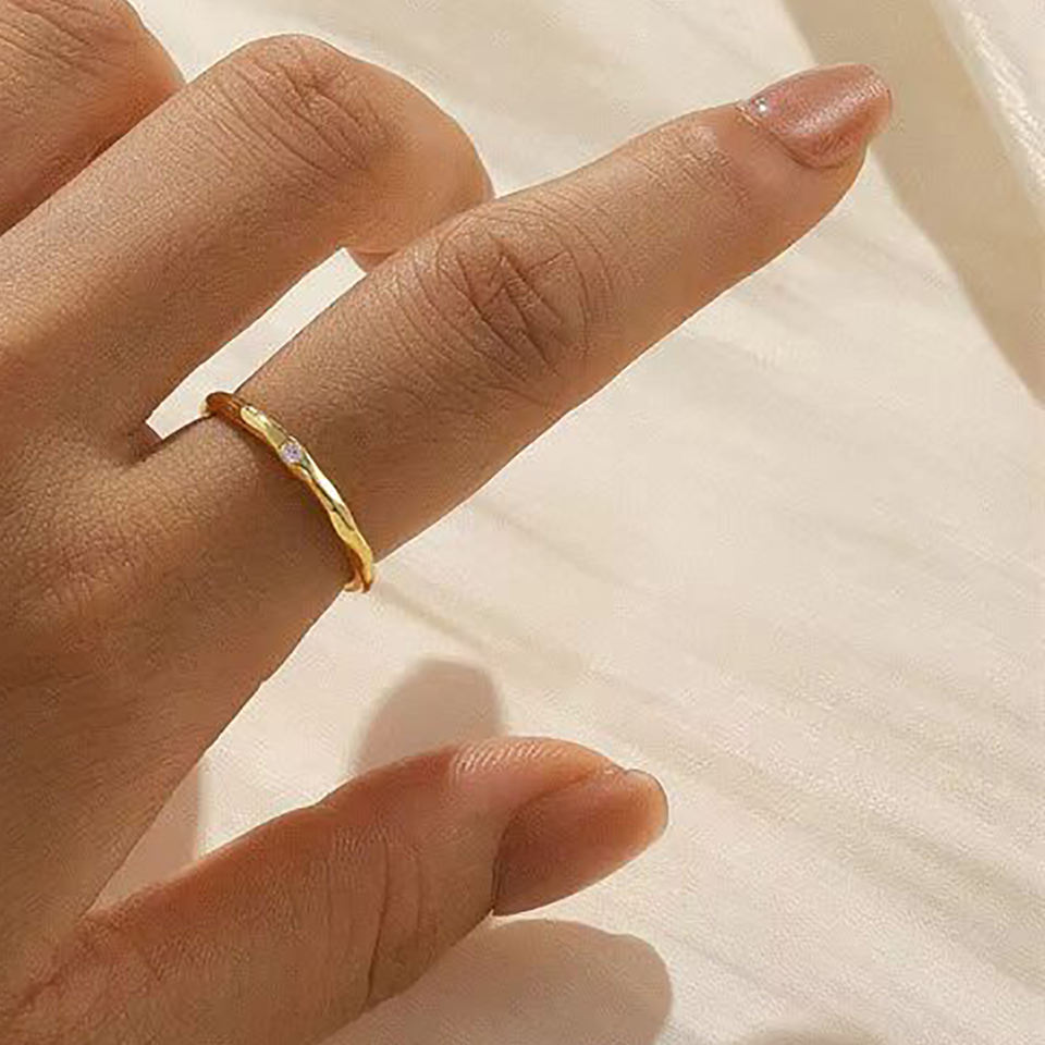 ชื่อสินค้า:แหวนซ้อนสไตล์โซลิแทร์ลายค้อน ทองคำแท้ 14K