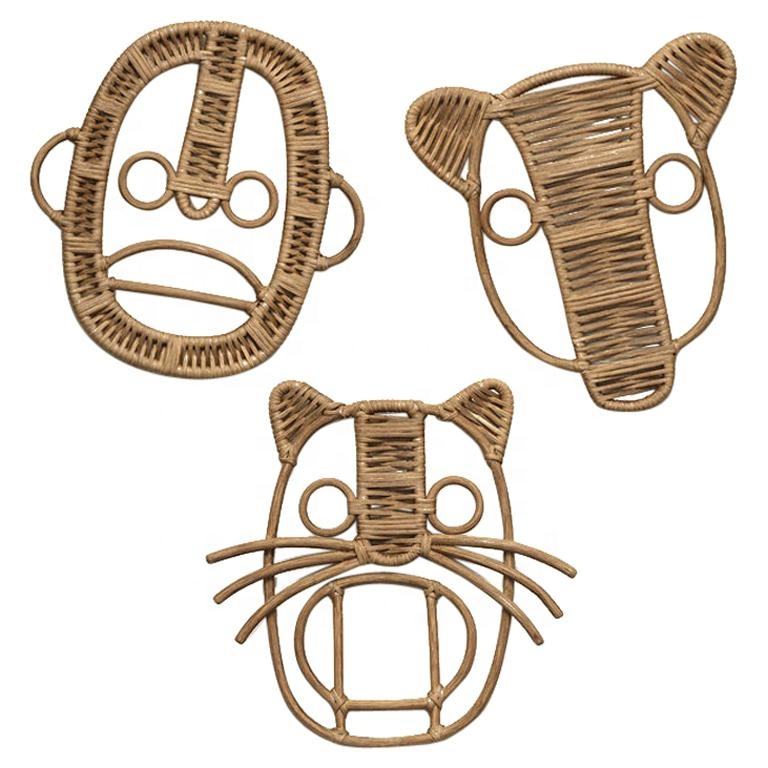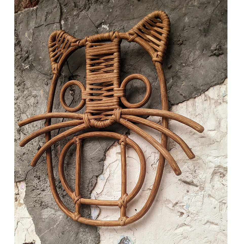 หน้ากากตกแต่งผนังผ้าทอมือไม่ซ้ำใคร,หน้ากากหวายธรรมชาติสำหรับตกแต่งผนังแนวศิลปะผลิตในเวียดนาม
