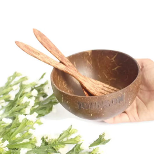 ชามมะพร้าวแกะสลักลายงานฝีมือสุดพิเศษ สำหรับแคมป์ปิ้ง สีสันปรับแต่งได้ ทันสมัย คุณภาพสูง ขายส่ง ชามเปลือกมะพร้าวแกะสลักโลโก้