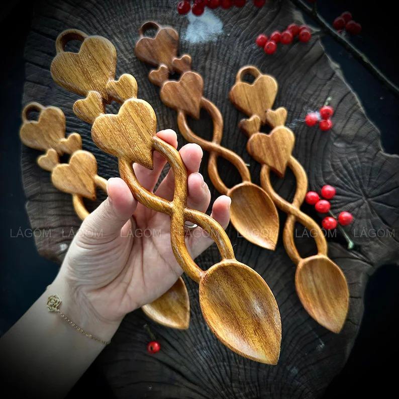 ช้อนไม้เคลือบทองทำมือแบบพิเศษ ขัดเงาอย่างดี ด้ามยาว สำหรับอาหารอินเดียแบบดั้งเดิม ของตกแต่งบ้านและครัว ของขวัญ