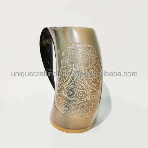 แก้วมักทรงแตรทำมือไม่เหมือนใครแก้วสไตล์ดั้งเดิมสำหรับเสิร์ฟเครื่องดื่มเย็นงานปาร์ตี้งานฝีมือตามธรรมชาติ