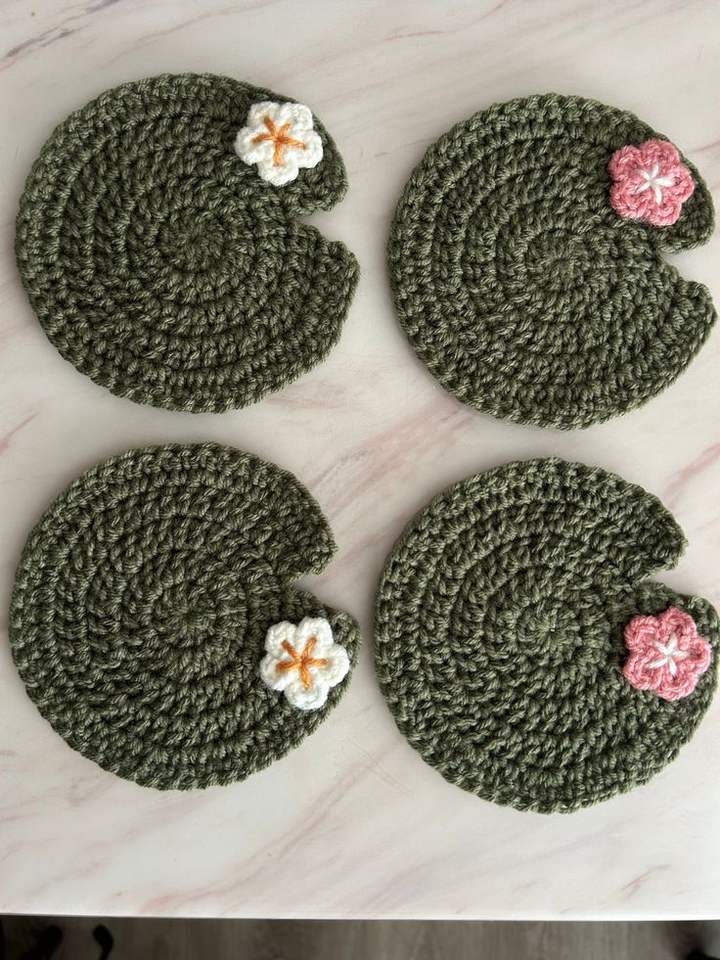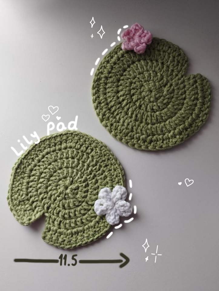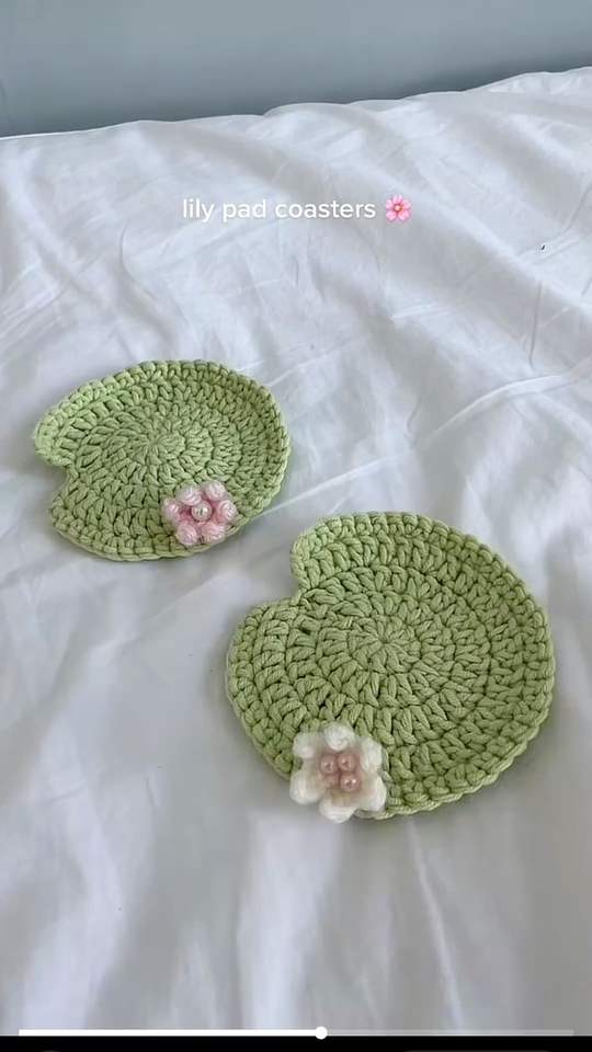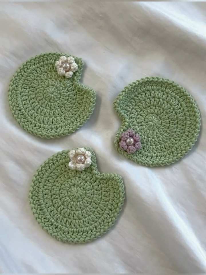 แผ่นรองแก้วถักโครเชต์รูปใบบัวบก งานแฮนด์เมดสุดพิเศษ สีเขียวมุก ทนทาน ทำจากผ้าฝ้าย ป้องกันความร้อน ใช้ตกแต่งโต๊ะในครัว