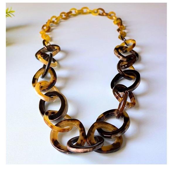 สร้อยคอทำมือจากเขาสัตว์ที่มีเอกลักษณ์เฉพาะตัว พร้อมงานฝีมือแบบดั้งเดิม เหมาะสำหรับงานแฟชั่นโชว์สไตล์ชาติพันธุ์ และการจัดแสดงเครื่องประดับในร้านบูติก