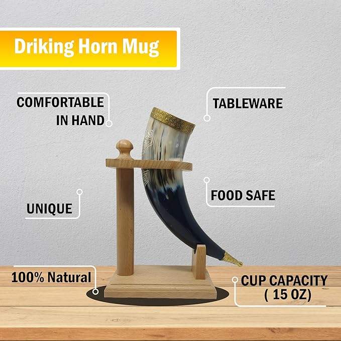แก้วทัมเบลอร์ฮอร์นวัวทำมือสไตล์ยุคกลางไม่เหมือนใครขัดเงาธรรมชาติเกรดอาหารเป็นมิตรกับสิ่งแวดล้อมสำหรับเครื่องดื่มโปรโมชั่นร้อน/เย็น