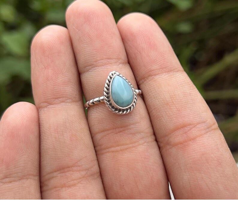แหวนคริสตัลพลอยลาริมาร์เงินสเตอร์ลิงทำด้วยมือไม่เหมือนใครเครื่องประดับอัญมณีสำหรับวันเกิดของขวัญที่สมบูรณ์แบบตามสั่งขนาด